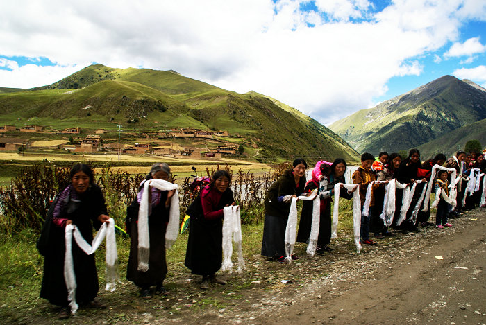 沿途信众组成的欢迎队伍